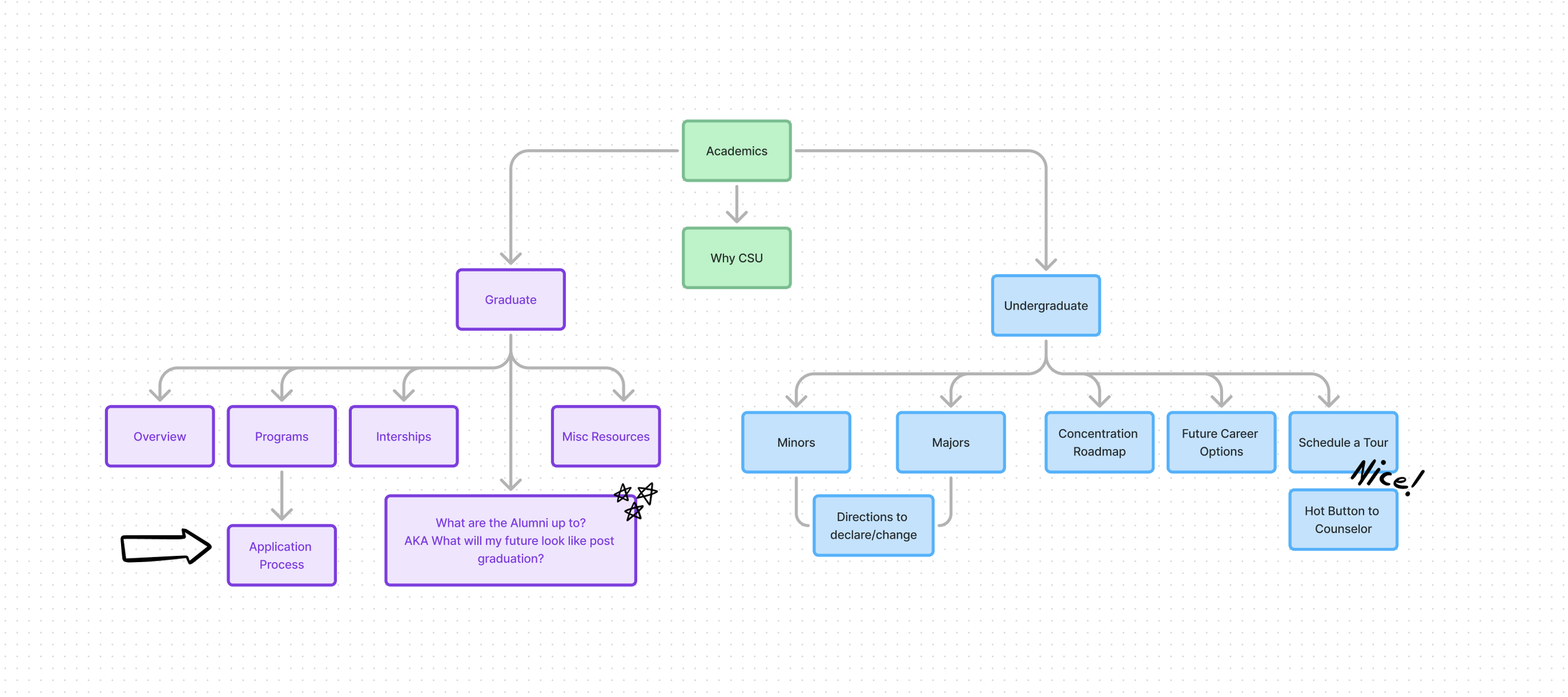 The users read through an average of 2.5 pages but were not finding the information they were after or the experiences unique to the department; such as study abroad, career opportunities, etc. During realtime observation testing, I discovered that number of prospective students simply moved on because they could not find these pages. The navigation was frustrating them and they were losing patience.